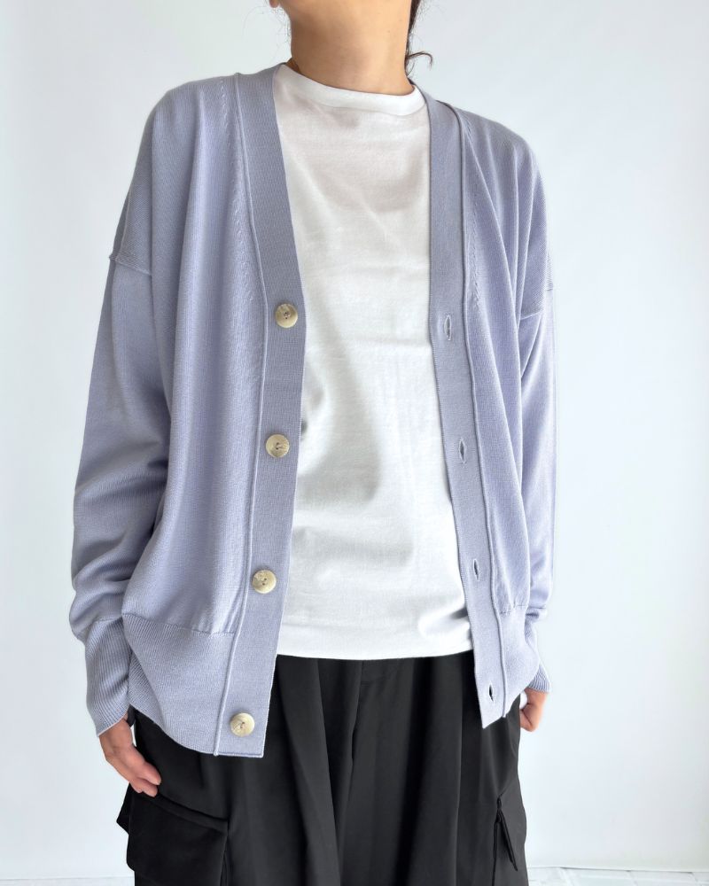 In this collection, the cardigan and zip jacket are crafted from Washable Merino Wool. This special yarn allows the garments to be washed at home while retaining the softness, premium quality, and natural luster of fine merino wool—bringing refined comfort into everyday life.