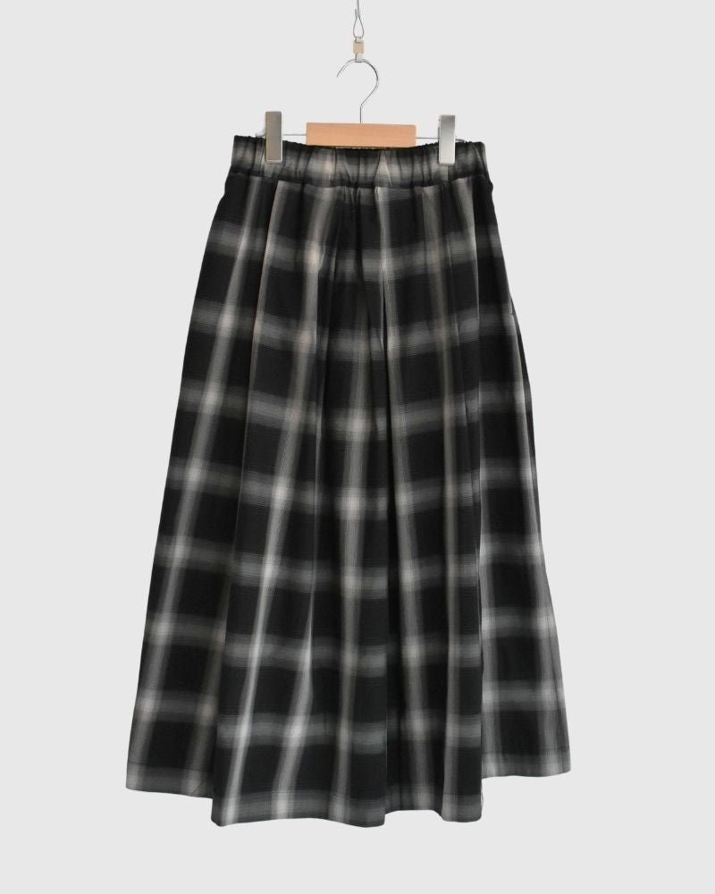The “DOLLY-W” tuck skirt by nicholson&nicholson stands out with its classic plaid pattern. Crafted from a cotton-nylon blend with a subtle sheen and structured drape, it feels light and comfortable to wear. Front tucks create volume and beautiful movement with every step. The elastic waistband ensures a relaxed fit while maintaining a polished look. Pair it with a simple top for an effortlessly refined and elegant style. Made in Japan.